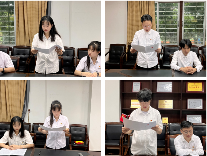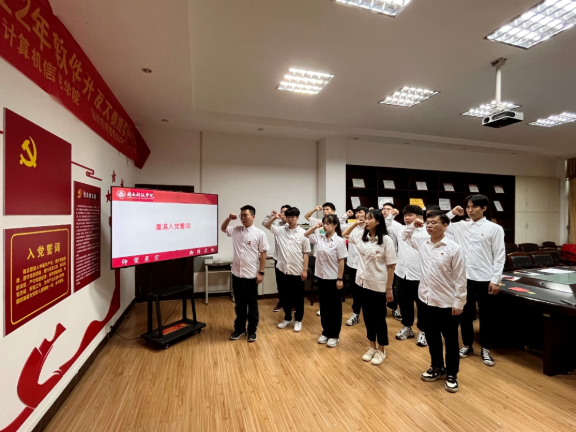 “我志愿加入中国共产党,拥护党的纲领,遵守党的章程,履行党员义务,执行党的决定,严守党的纪律,保守党的秘密,对党忠诚……”,毕业生党员们在党支部书记林旺涛的带领下面朝党旗、高举右拳,重温入党誓词,回顾初心使命,进一步增强了党员的使命感和责任感。