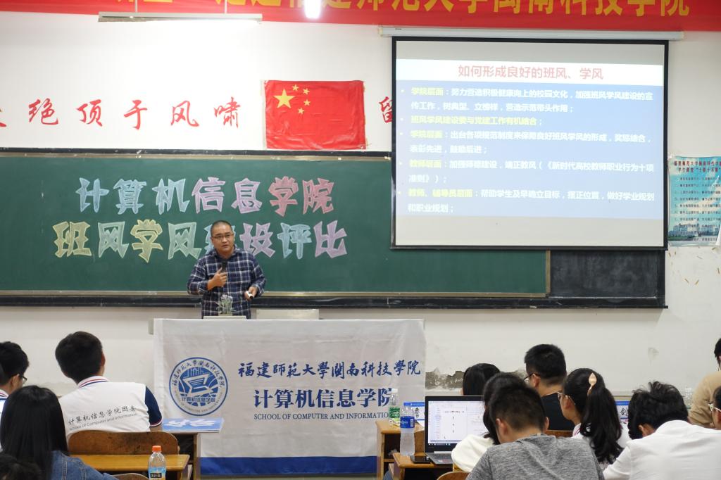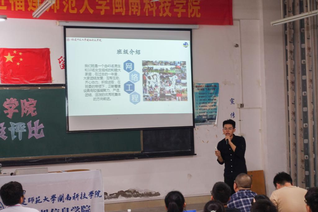 11月21日下午,公司举办2017-2018学年班风学风建设评选活动。莅临此次活动的有公司党组织工作临时负责人张剑锋老师、PA视讯集团官方网站员工工作负责人陈章宫老师、PA视讯集团官方网站团委书记林钊老师、PA视讯集团官方网站辅导员廖肸娜老师、游林爱老师、詹雨君老师。