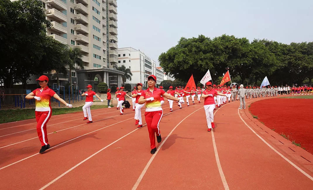 伴随着音乐,健步走开始啦!大家精神饱满、热情高涨,呼吸着新鲜空气,行走在跑道上,感受着健步走带来的快乐。每走一步都是风景,每走一步都在燃烧卡路里,享受运动、享受生活、享受自然。最后,我们在国旗下进行合影。
