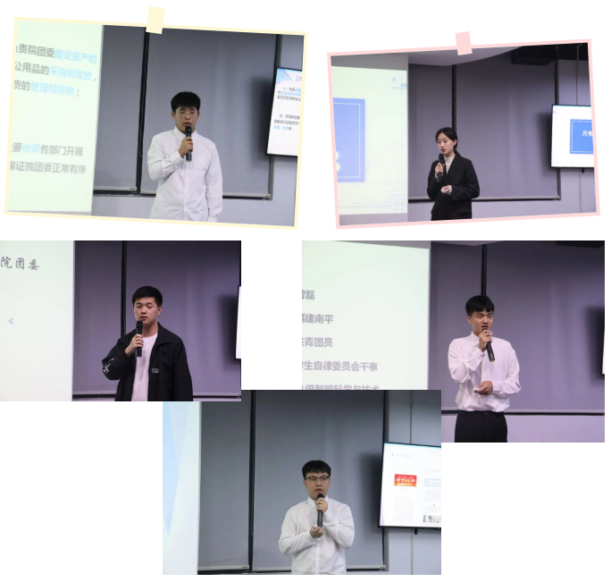出席本次活动的评委为院团委书记林旺涛老师,院团委副书记叶雯静同学,院员工会执行主席路天一同学,院主席团成员张惠真、汤邵娟同学以及院各部门部长。