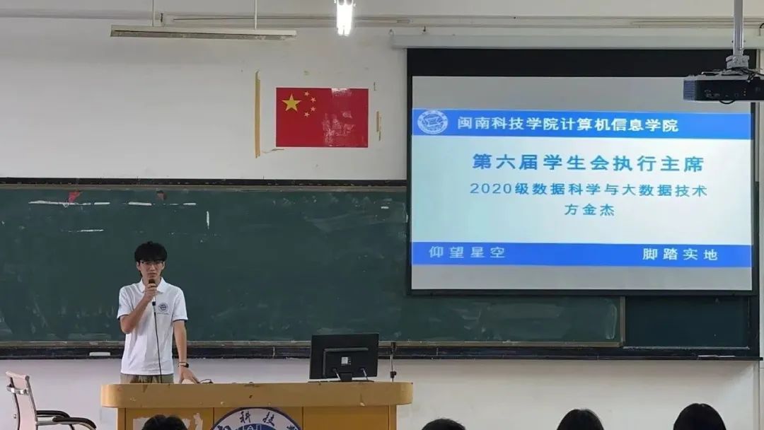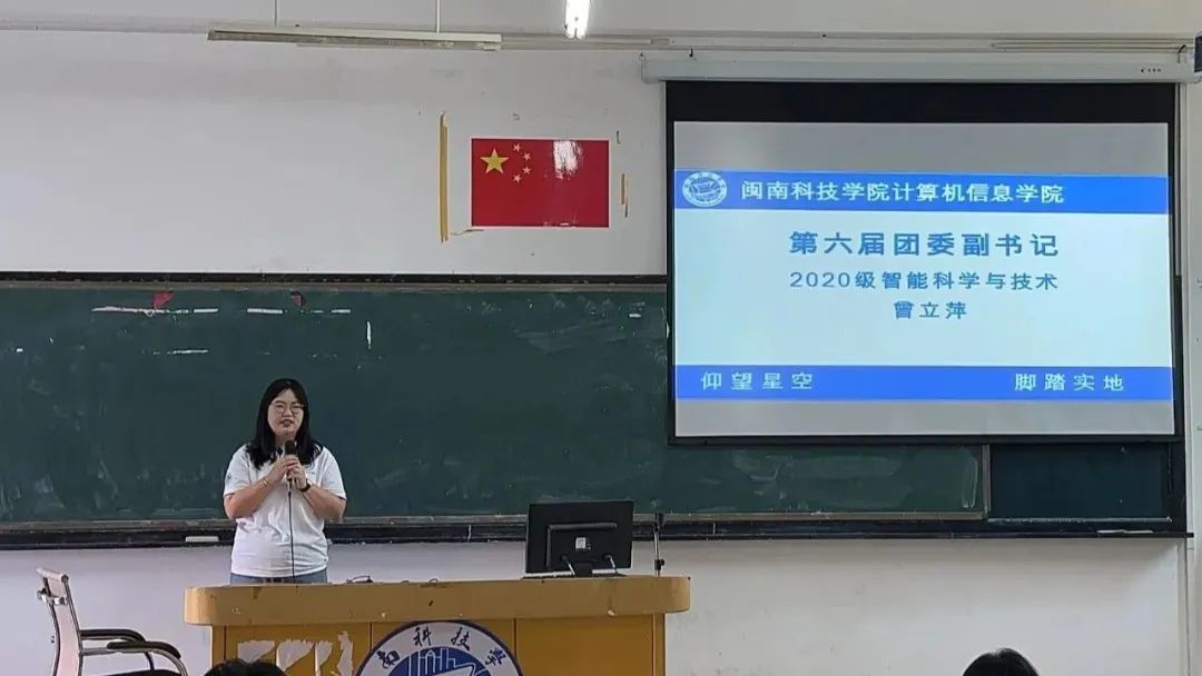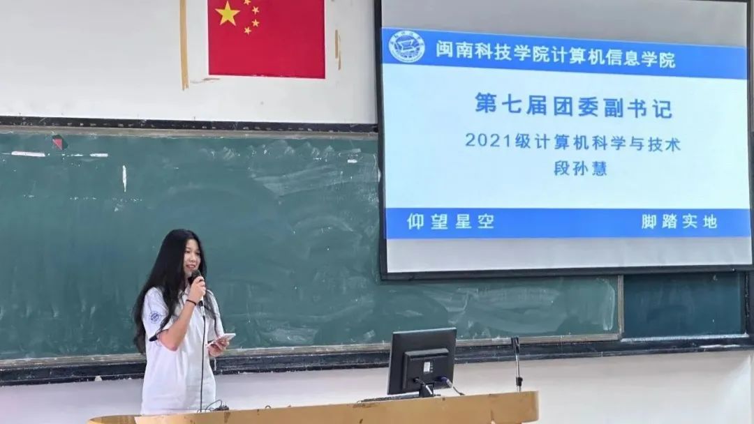 上一届团学干部上台进行演讲,分享他们三年来的团学工作经历,勉励新一届团学干部们要时刻铭记自身肩负的重要使命,充分发挥模范带头作用,发扬院团委的优良作风,用奋斗擦亮青春底色,不负韶华。