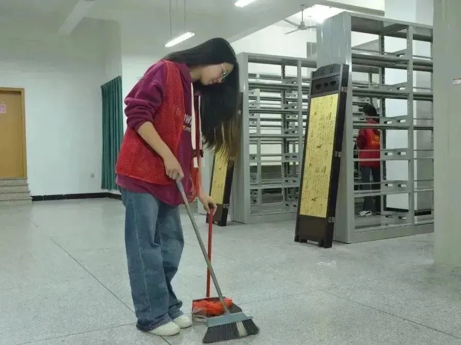 公司青年志愿服务队前往康美校区图书馆,志愿者们满怀热情地投入到志愿服务之中,在不打扰图书馆自习同学的情况下,志愿者们打扫地面垃圾,认真擦拭每一张书桌,擦拭书架灰尘,保持图书馆整洁卫生。
