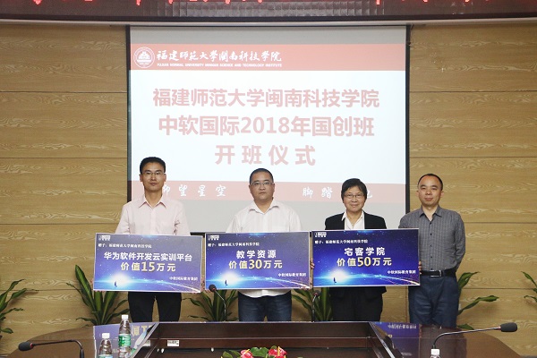 随后,举行企业平台项目捐赠仪式,中软国际为公司捐赠了华为开发云实训平台、教学资源、宅客公司等平台项目。