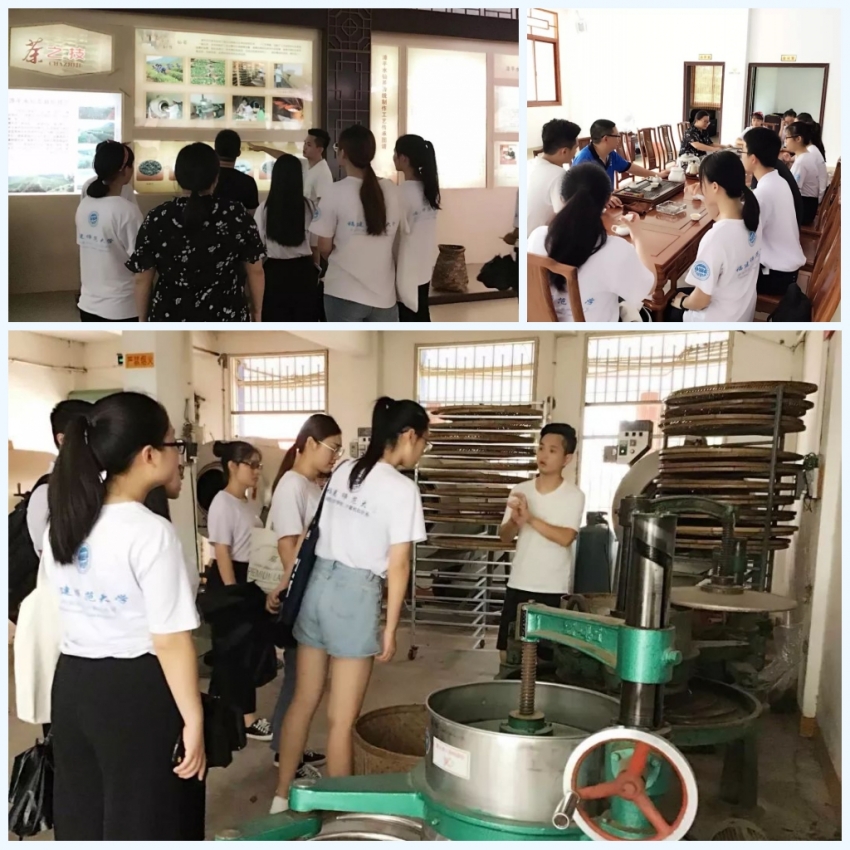实践队来到中国水仙茶第一村——南洋镇北寮村。北寮村作为南洋生态小镇建设先行示范项目,重点实施“美丽茶村·水仙寮”项目。南洋镇团委书记严小燕、副镇长曹兴明以及“茶王”沈天星之子沈达铭带领实践队成员参观生态有机茶园、水仙茶合作社及茶博物馆,为实践队成员介绍南洋镇水仙茶悠久历史及传统制茶手艺。