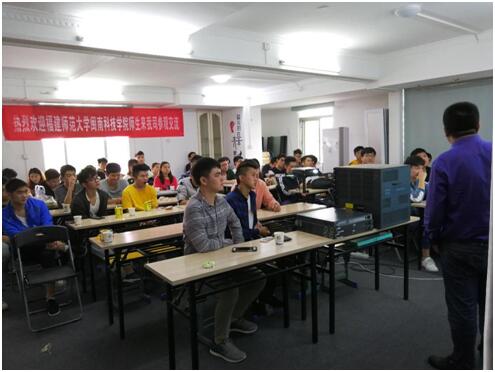 上午10点,企业安排了以“网赢人生”为主题的技术讲座,并围绕网络应用现状、当前网络人才需求和技术要求等方面进行了具体分析。在讲座中,企业通过播放宣传短片让员工了解了公司的发展历程及业务内容,通过多个短片让员工了解了网络工程师获取CCNA、CCNP、CCIE以及H3CNE和H3CSE等证书的重要性和必要性,并由泉州润天科技股份有限公司负责人江鸣总经理对老员工讲解了老员工职业规划的重要性,