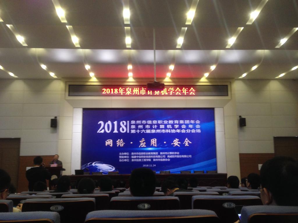 11月24日,由福建省泉州市计算机学会主办的以“网络、应用、安全”为主题的泉州市计算机学会年会在泉州信息工程公司举行,PA视讯集团官方网站负责人禹谢华副教授带领部分教师和员工应邀前往参加。