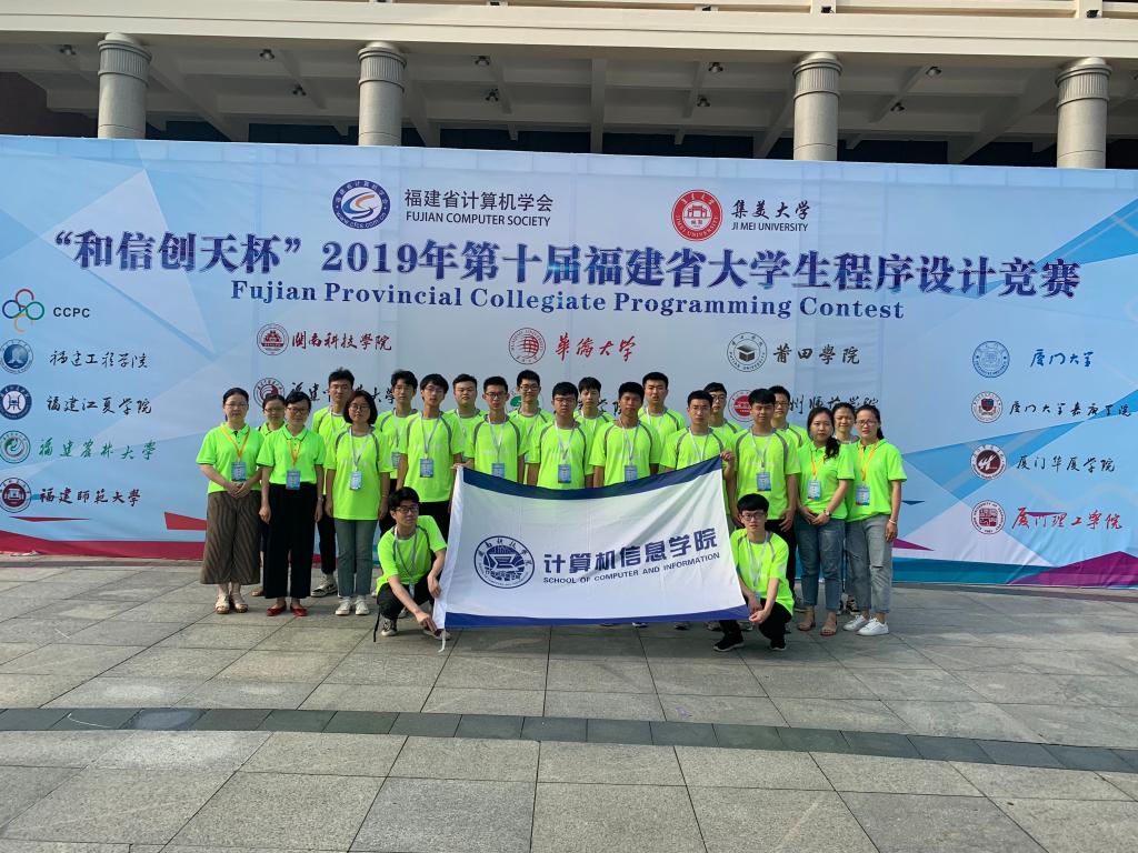 2019年竞赛启动以来,公司成立教师工作小组,通过校内学科竞赛、蓝桥杯等比赛选拔了6支队伍参赛,并邀请福州大学集训队进行经验分享,最终取得此赛事奖项零的突破。