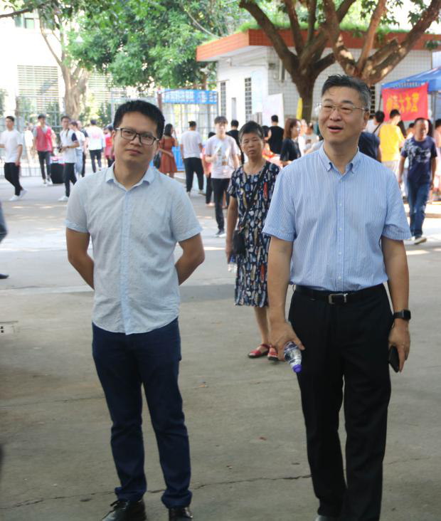 7日上午,校领导与院领导走访迎新现场,了解新生报到情况,与负责迎新的师生握手致意,PA视讯集团官方网站行政临时负责人禹谢华亲切慰问刚入校的新生及家长,对他们的到来表示热烈欢迎。应PA视讯集团官方网站团委员工干部邀请,院领导与现场迎新师生一起合影留念。
