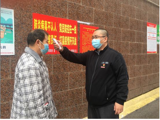 参加居民小区疫情防控志愿活动为小区居民测量体温