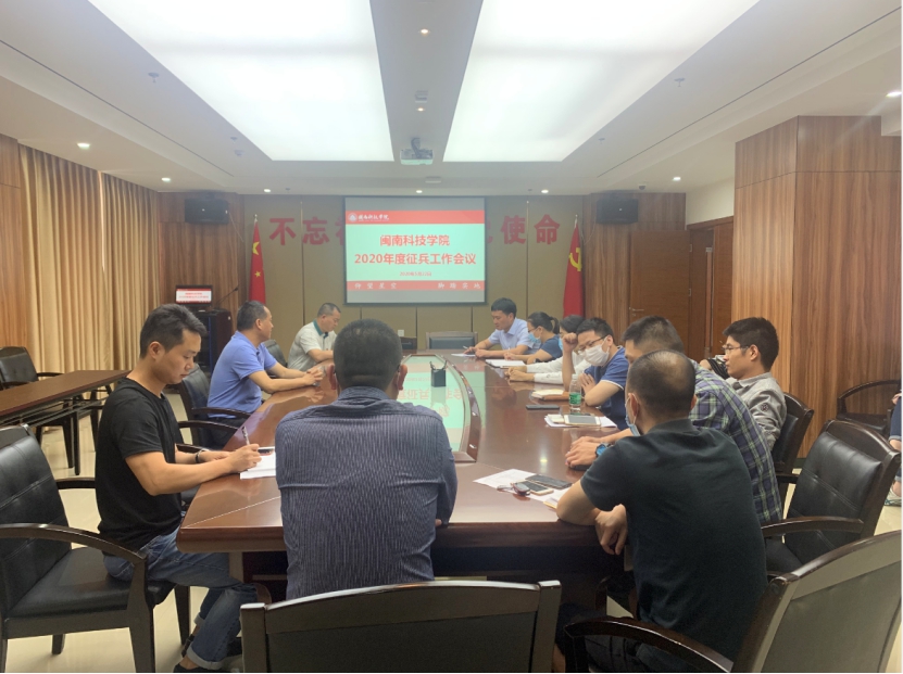 5月22日上午,公司召开2020年度征兵工作会议。常务副董事长周勇军、董事长助理林树生,学工处、教务处、保卫处、武装部负责人及各二级公司员工工作负责人参加会议,会议由保卫处处长庄天怀主持。