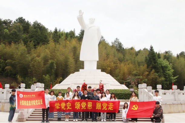 在毛主席纪念园,全体党员师生向毛泽东雕像三鞠躬,并瞻仰了毛泽东雕像,深切缅怀老一辈革命家的丰功伟绩。