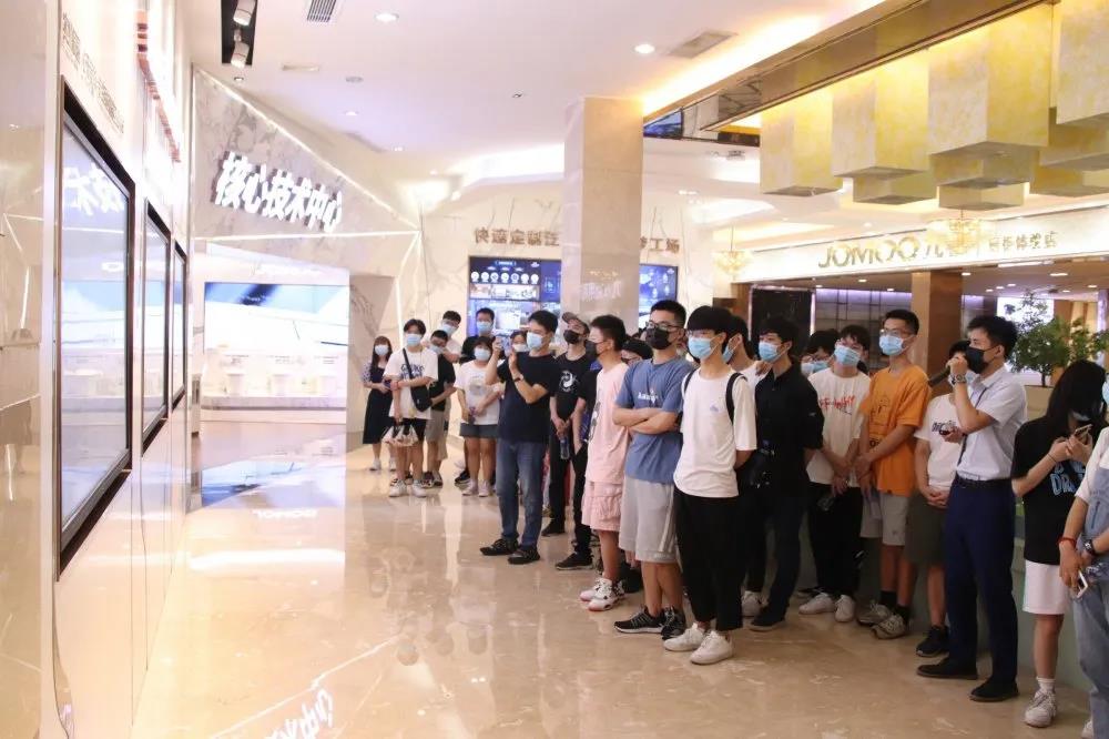 第一站是参观九牧集团的店效研究中心,抵达目的地后九牧集团的工作人员就热情地接待了同学们。并且耐心介绍了九牧卫浴品牌的优势以及集团泛家居产业的发展情况,详细介绍产品中涵盖的智能技术、专利等知识,让同学们大开眼界。
