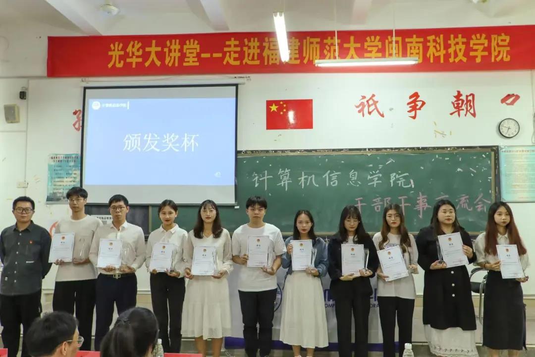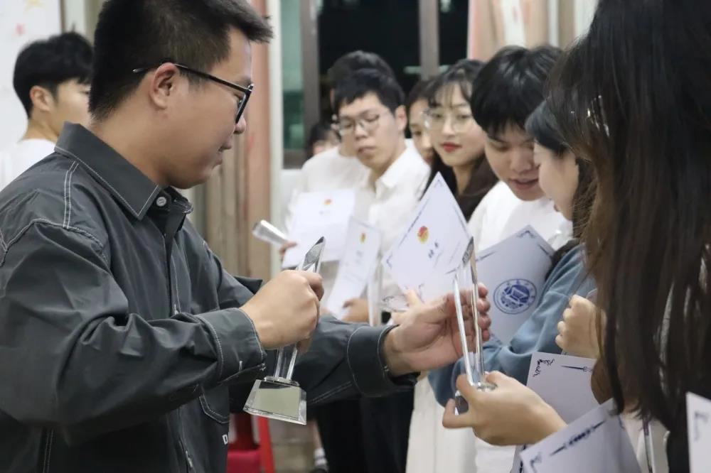 林旺涛老师为往届公司团学干部颁发奖杯和聘书,感谢他们对团委的付出。