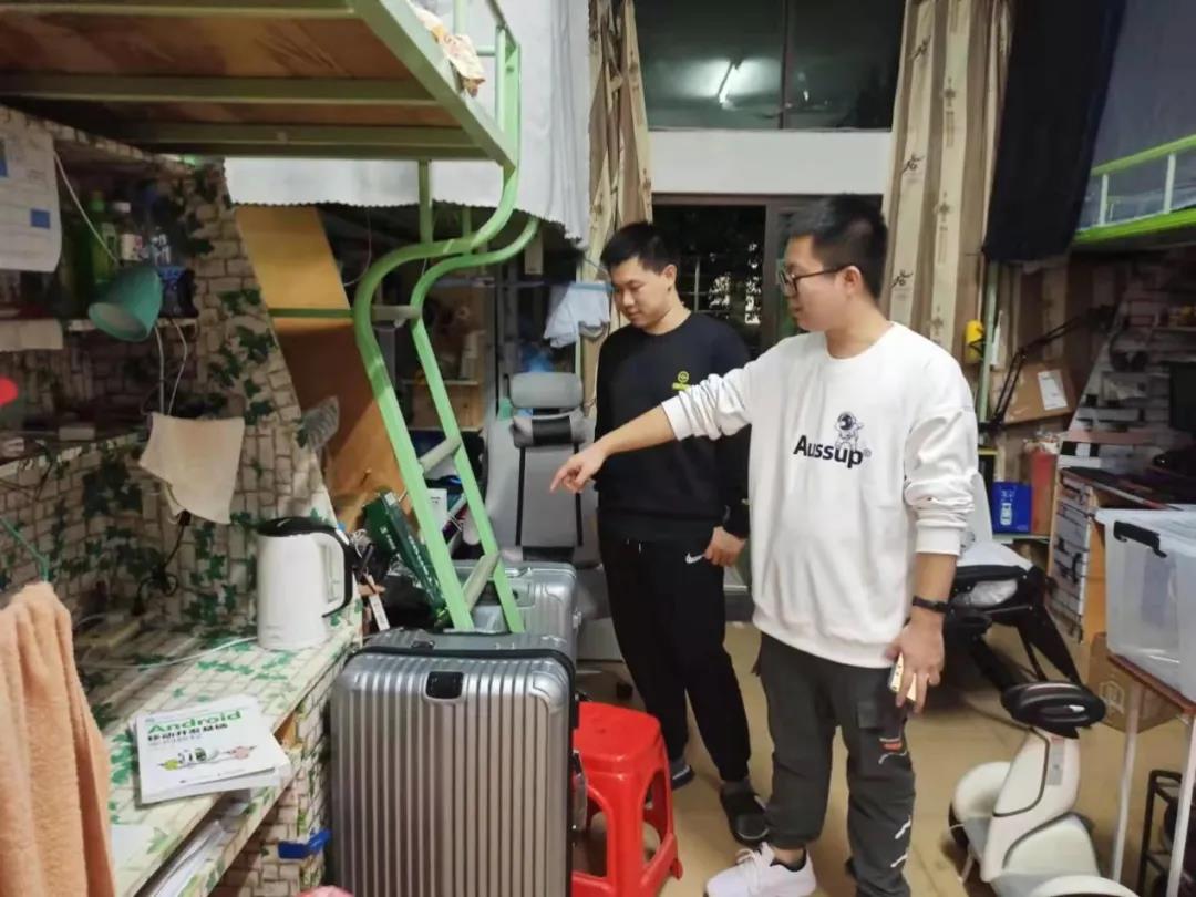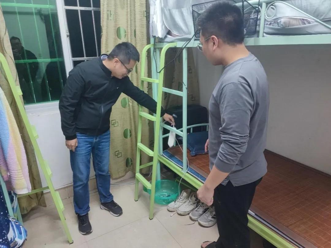 经理禹谢华、公司党总支书记汪艺明书记带领各年级辅导员,深入员工宿舍,排查是否违规使用高功率电器。