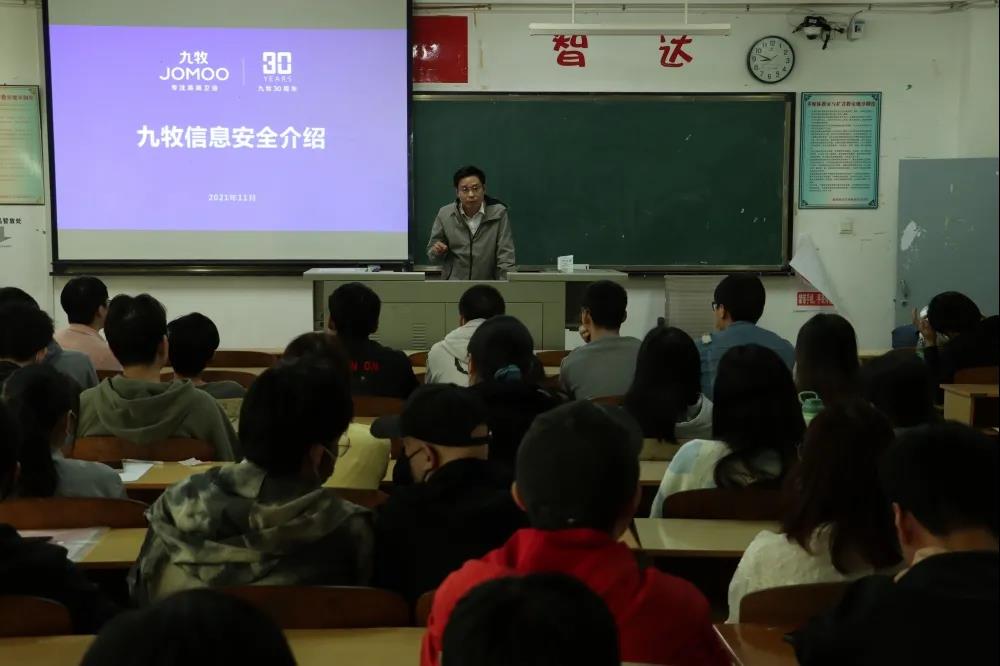协同信息部总监姚志辉、信息安全组技术经理杨铭从九牧集团的简介、IT中心简介、岗位需求、成长支持、信息安全等方面对2022届毕业生进行宣讲。