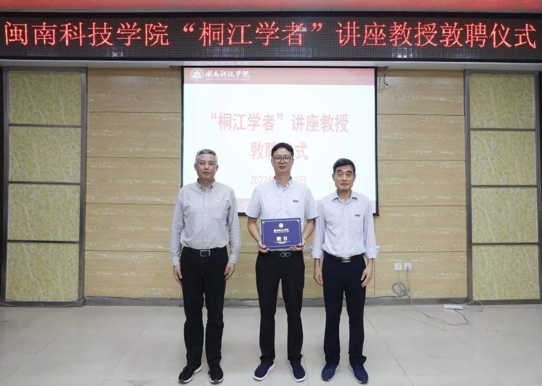 敦聘仪式上,董事长游小波为林耀进教授颁发聘书,公司党委书记李旭为林耀进教授佩戴校徽。