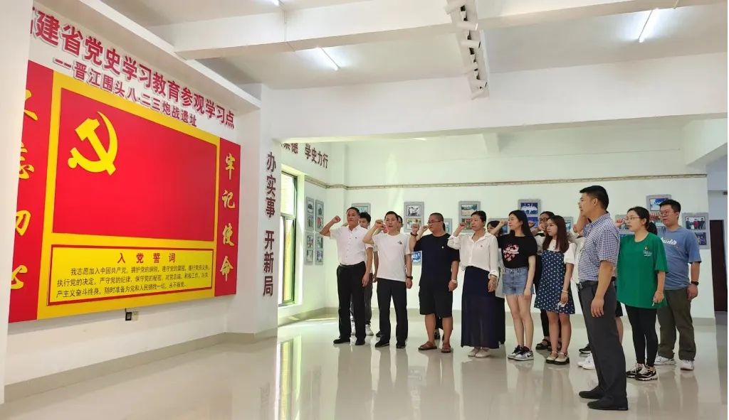 为深化党员同志的身份意识和责任意识,进一步增强党员的责任感、使命感和廉政意识,鼓励党员勇于接过革命先辈手上的接力棒,埋头苦干砥砺前行。6月24日,公司党总支师生党员在常务副董事长周勇军的带领下前往晋江围头“八·二三”战地公园、金井廉洁文化教育基地,开展“喜迎二十大,奋进新征程”主题党日活动,全体党员共同追寻红色印迹、重温入党誓词、强化廉政教育。