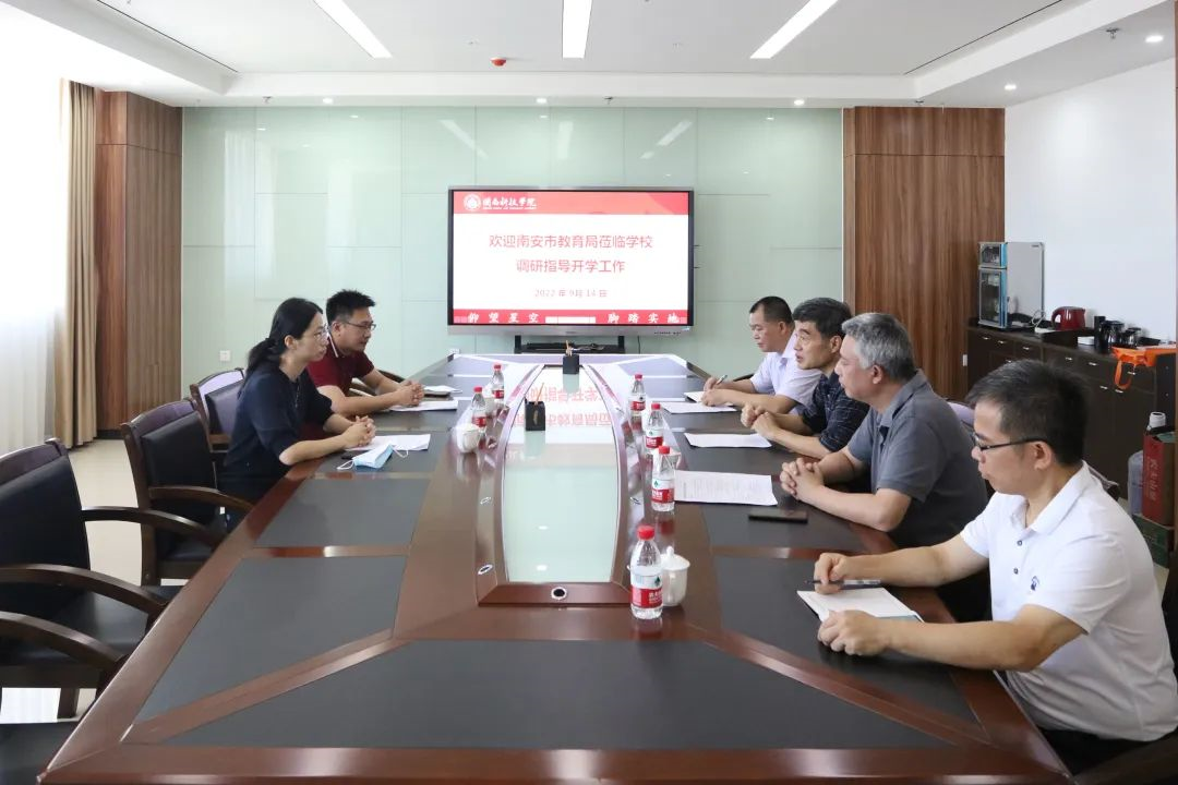 9月14日上午,南安市教育局副局长余雪娜、体卫艺科科长魏健晓莅临公司调研指导开学工作。校领导游小波、李旭、林树生参加调研座谈。