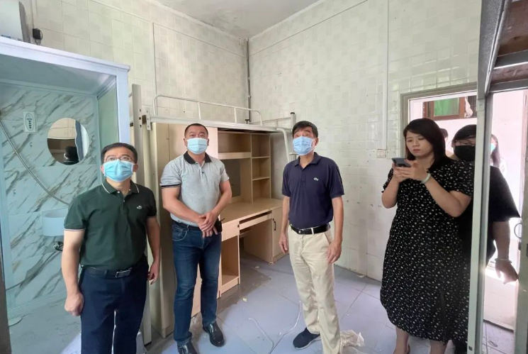校领导一行分为两组实地查看了公司大门门岗、新生宿舍、外卖柜装置、快递点等重点场所,与相关工作人员深入交谈,全面了解新生到校、疫情防控、后勤保障、基础设施改造等各项迎新准备工作的落实情况,并对检查中发现的问题提出整改措施。