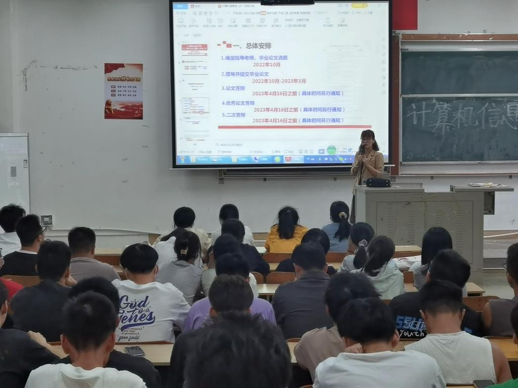 10月23日、24日,公司召开2023届毕业论文暨毕业实习动员大会。本次大会由公司计算机网络系、智能大数据系共同举办,结合线上线下等多种形式为531位准毕业生解读《教务〔2022〕111号--关于做好2023届本科毕业生毕业论文(设计)指导工作的通知》文件以及毕业实习相关政策条例。