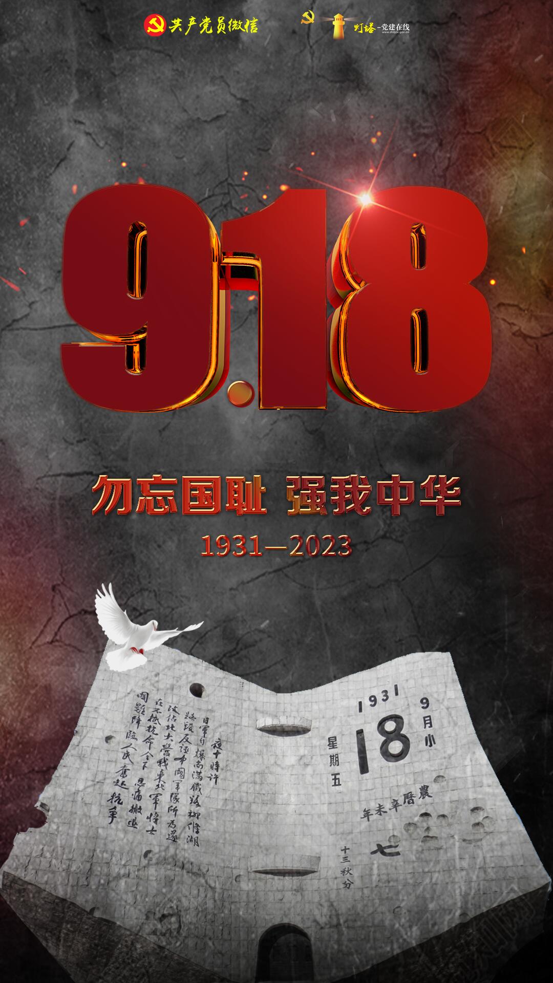 碑形为翻到1931年9月18日的台历