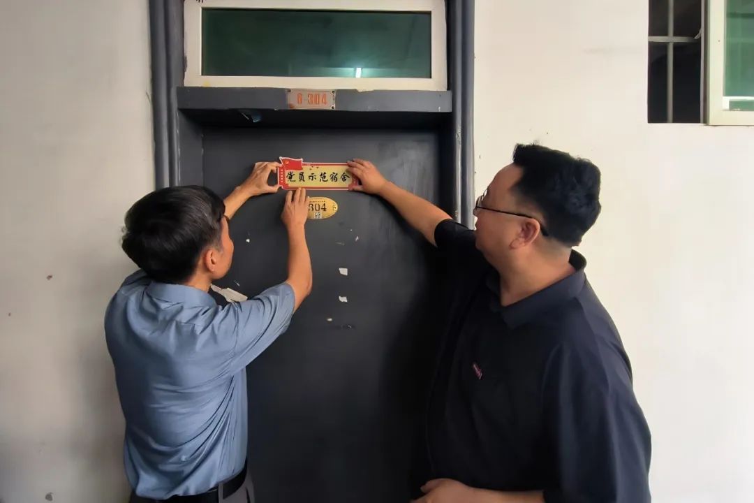 董事长游小波在挂牌仪式结束后深入宿舍,了解员工党员的学习及生活情况,并对员工党员提出殷切期望,要求各位员工党员要从身边小事做起,在学习和生活中彰显责任担当,督促帮助身边的同学共同营造安全、卫生、和谐的住宿环境,用青春本色诠释“党员示范宿舍”的榜样力量。