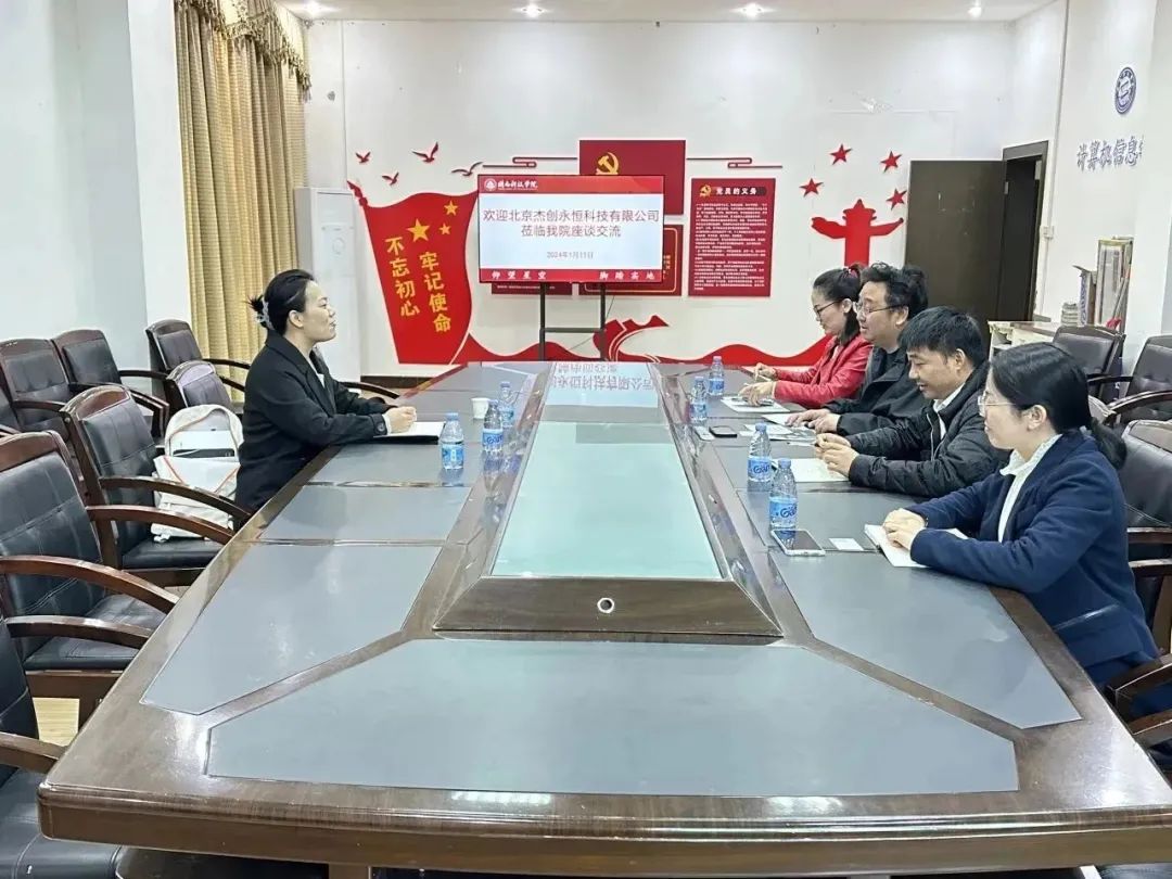 1月11日,北京杰创永恒科技有限公司经理李路燕莅临公司座谈交流,经理禹谢华、公司党总支书记汪艺明、智能大数据系主任陈美龙和部分教职工参加座谈交流。会议由经理禹谢华主持。