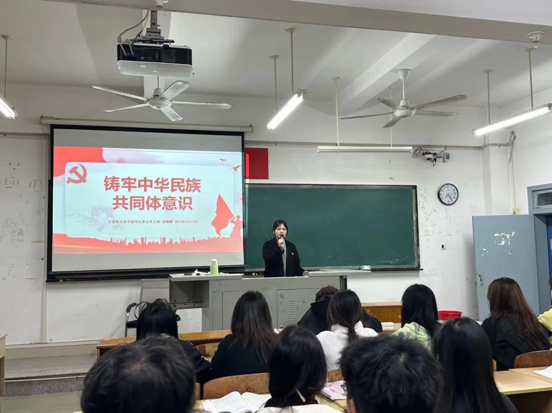 党支部书记卓晓晴结合两会热点、当前时政,带领大家一起学习习近平总书记关于民族团结的重要论述,并围绕铸牢中华民族共同体的战略意义、把握中华民族共同体意识的丰富内涵以及铸牢中华民族共同体意识的实践路径三个方面展开讲解。着重讲解了“五个认同”、“四个共同”、“四个与共”和“四对关系”的丰富内涵。要求大家要认真学习中华民族文化知识,增强文化认同,将中华民族共同体意识内化于心、外化于行;要发挥先锋模范作用,自觉维护民族团结,当好民族团结进步事业的践行者、促进者和守护者;要主动担当起铸牢中华民族共同体意识的神圣使命,用实际行动为铸牢中华民族共同体意识和中华民族伟大复兴贡献青春力量。