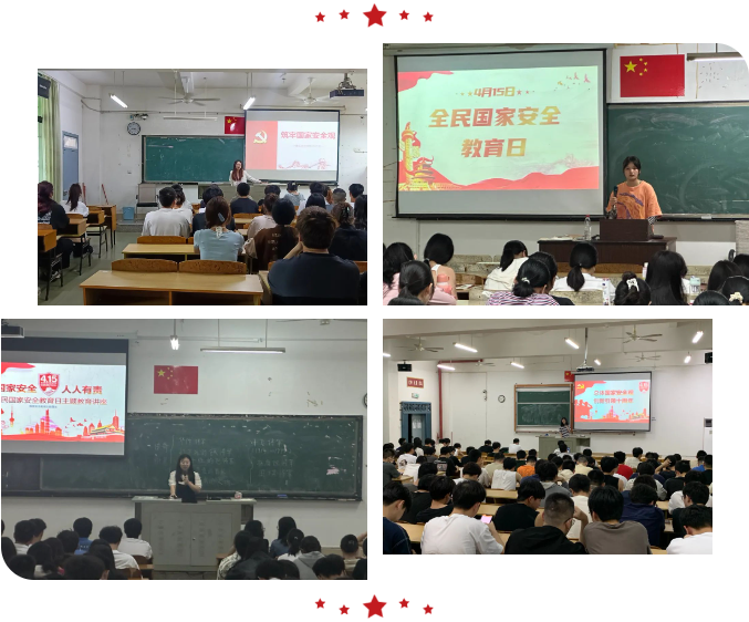 辅导员们围绕“什么是国家安全”、“危害国家安全的行为”、“我们身边的国家安全防范”、“与国家安全有关的法律小常识”、“谁来保卫国家安全”等五个方面,帮助同学们正确认识和理解总体国家安全观,厚植共同维护国家安全的责任感和使命感。辅导员们要求同学要自觉遵守国家法律法规,不参与任何危害国家安全的活动;要保护好自己的个人信息,不点不可靠的网站;要强化责任意识,担当保卫国家安全的重要职责,做好新时代的国家安全守卫者。