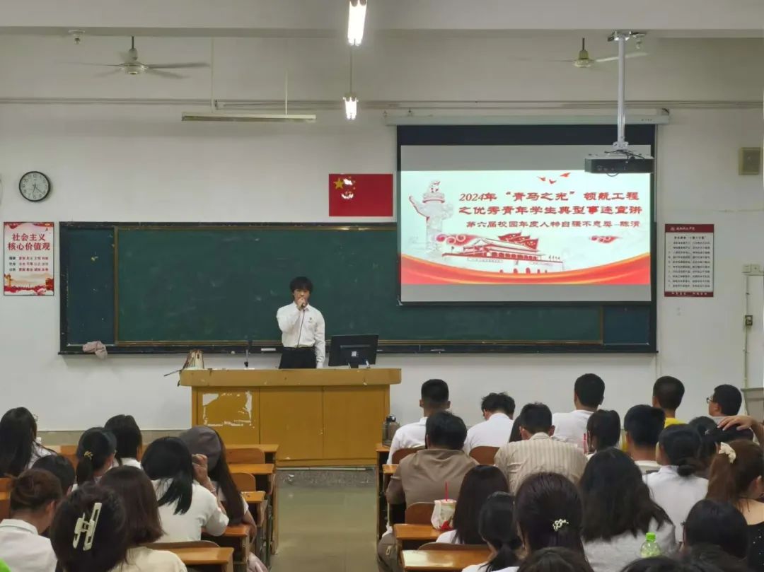 陈清结合自身经历,分别围绕所获荣誉、社会实践、志愿活动等方面进行了分享,鼓励同学们要明确人生目标和自我定位,抓住一切提升自己的机会,积极参加各类活动,全面提高自身专业能力与综合素质,学会逆风执炬成长,坚毅前行,书写属于自己的美好篇章。